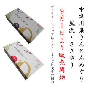 今年もいよいよ中津川栗きんとんの販売が9月1日より始まります。 にぎわい特産館では、オリジナル詰め合わせセット「中津川栗きんとんめぐり風流・ささゆり」が販売開始します。 14店舗の栗きんとんが、7店舗ごとに分かれて、地元 […]