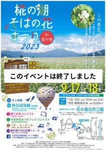 このイベントは終了しました。 椛の湖自然公園では、県内最大級のそば畑一面に真っ白なそばの花が広がるなか、4年ぶりに「椛の湖そばの花まつり」を開催します。令和5年9月17日(日)~9月18日(月・祝)に「月の市」と同時開催 […]