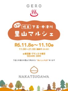 このイベントは終了いたしました 岐阜県にある下呂市・中津川市の両市で構成する、下呂・中津川広域観光振興協議会が、第3回 岐阜 下呂・中津川 里山マルシェを開催します。 今回、中津川市内12店舗の和菓子屋の「栗きんとん」を […]