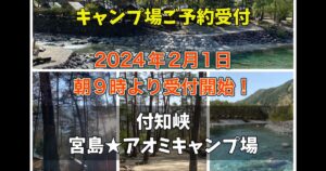 2024年『付知峡 宮島・アオミキャンプ場』予約開始のご案内